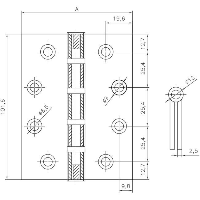 DOBRADIÇA FIEL C/ROLAMENTO INOX 304