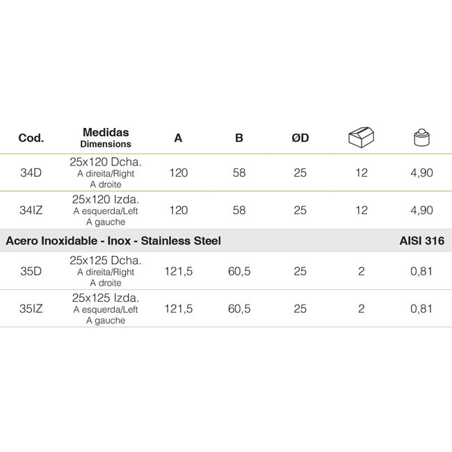 Material: Inox 316 Polido / Ferro