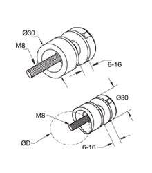 Botão Fixador: Ø30 ( perno M8 ) - Vidro: 6 - 12,76mm