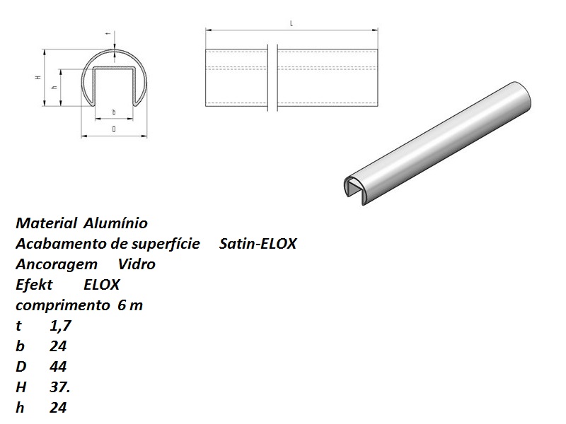Tubo Ranhurado p/sistema corrimão Led